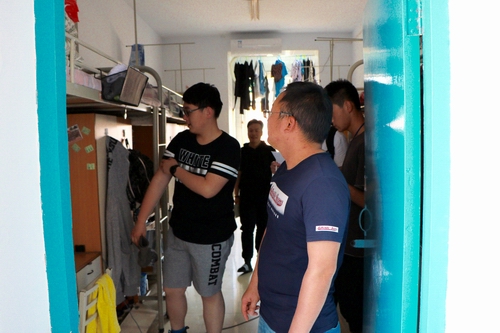 在检查过程中,检查组成员重点对宿舍卫生、用电安全以及防火、防盗等诸多方面进行了检查,对发现的问题现场提出并予以整改。经过将近一个多小时的精心检查,发现各宿舍卫生状况普遍良好,基本做到了被褥衣物叠放整齐,地面、桌面干净整洁,用电合理、安全。但与此同时,仍发现个别宿舍“不达标”存在卫生死角,桌面摆放不齐,空气质量较差等卫生问题,检查组及时指正,改善了宿舍学习生活环境。
