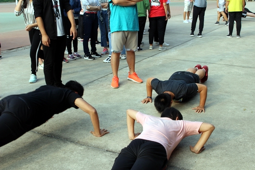 本次活动开始之前,全体参与者被分为四队:“王者一队”“颜值二队”“魔仙三队”“飞虎四队”,各队选出队长并确定口号,在简单的热身活动之后,本次新生素质拓展活动正式开始。本次活动主要由“传球识人”“背夹球”“不倒森林”“坐地起身”四部分组成。
