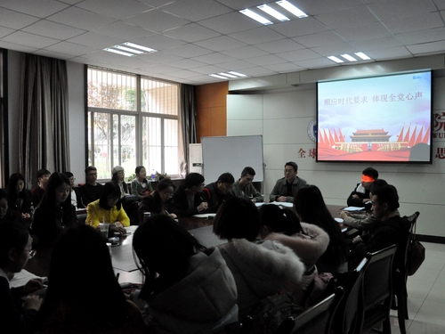 本次会议第四项,韩潇老师发表了他对此次会议的看法及总结,肯定了党员及积极入党分子对于十九大报告的学习,并希望党员及积极入党分子能够做好本职工作,学好自身专业知识,做有能力有才华的优秀人才。