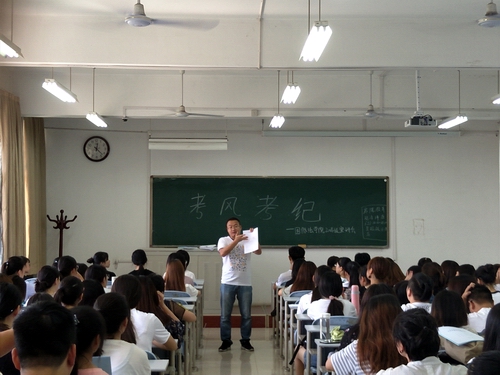 6月22日,24日,性爱直播 2015级辅导员秦音老师、2016级辅导员苏芝双老师、2017级辅导员徐秉鹏老师分别组织本年级学生,以“严肃考风考纪”为主题召开了班会。在班会上,辅导员老师们就“诚信应考”提出了具体要求,提醒同学们注意考试秩序、尊重考场规则,并做好考试准备。