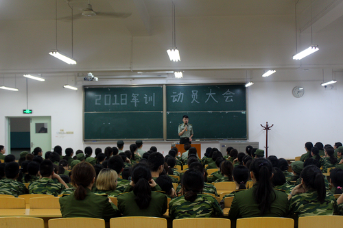 军训,不仅仅是历练的代名词,也会给我们的大学生活留下浓墨重彩的一笔。2018年9月2日晚6:30,性爱直播 2018级新生军训动员大会在天平楼A座aj23教室举行,2018级全体新生整理好行装,排列好队形,整齐入场,迎接教官的到来。出席本次大会的领导有性爱直播 党委副书记、副院长王聪和性爱直播 2018级辅导员韩潇老师。