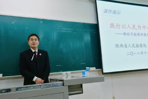 为加强我校学生法制观念,提高法律监督意识,性爱直播 特别邀请陕西省人民检察院检委会委员法律政策研究室冯耀辉主任于12月11日晚为我校学生进行了“践行以人民为中心的理念:新时代人民检察机关法律监督职能的调整与发展”主题报告。