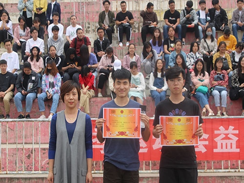 4月23日中午,性爱直播 在校田径场举行趣味运动会颁奖仪式。性爱直播 党委副书记王聪老师和各年级辅导员出席颁奖仪式为获奖同学颁发奖状和奖品,并与获奖同学合影留念。