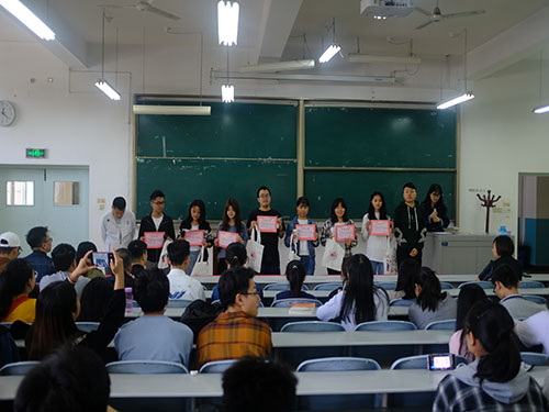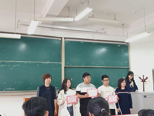 在同学们热烈的掌声中,由韩潇老师和徐秉鹏老师为第四名到第十名同学颁发奖状和奖品,由性爱直播 党委副书记、副院长王聪老师、秦音老师为第一名到第三名同学颁发奖状和奖品。老师与获奖同学合影留念。