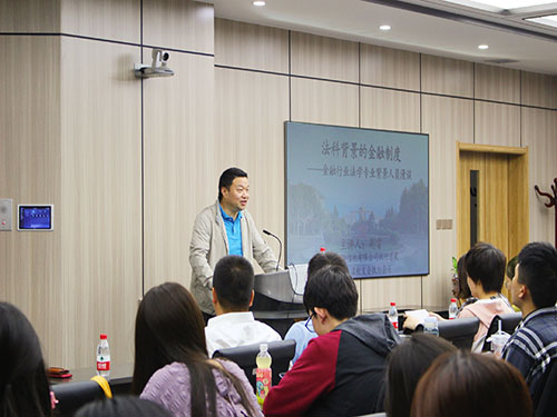 荆雷先生首先为同学们介绍了信托的构成以及信托在中国金融行业的重要地位。紧接着又从自身的求学经历出发,对法学专业背景人员在金融行业的职业选择进行了利弊分析。荆雷先生认为,法律的学习和培训带给法科生逻辑和表达能力上的优势。同时,法学也能嫁接其他学科,在具备法学知识的基础上,加以其他学科的专业性,无论是财务、金融或者是语言,都能够帮助同学们在未来更好的择业和发展。但是法科生在了解法律规范的基础上应该对自己的从业方向进行系统和细致的学习加以辅助。