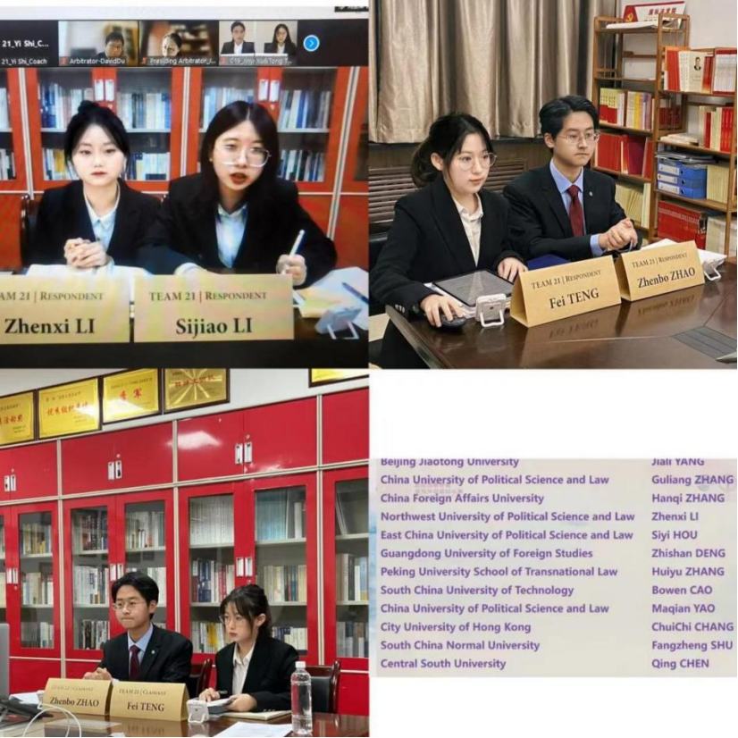 我校代表队由性爱直播 院长刘亚军教授、师怡副教授、张萍副教授、张望平副教授担任指导老师,由师怡副教授担任领队。团队由性爱直播 2020级学生滕菲、赵振博、李圳茜、李思蛟,行政法性爱直播 2021级学生项佳楠,民商法性爱直播 2021级学生周凯悦、何天翊组成。滕菲、赵振博、李圳茜、李思蛟四位同学在口头辩论环节担任上场队员。李圳茜同学获循环赛最佳辩手。