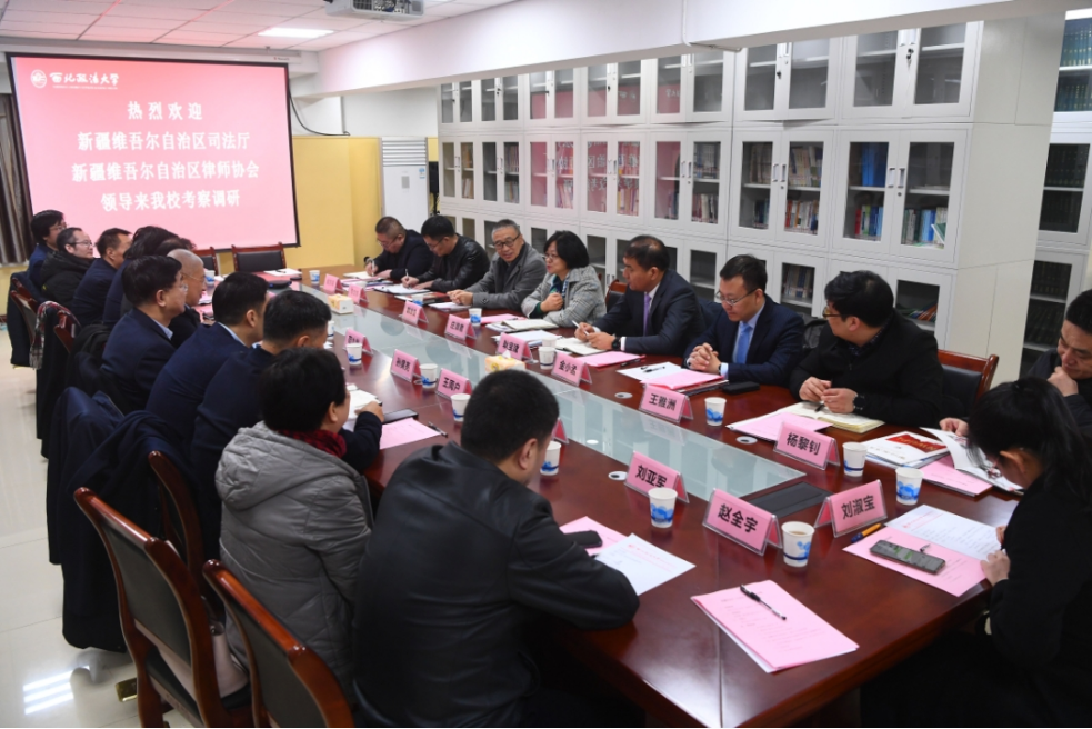 2月16日上午,新疆维吾尔自治区司法厅党委委员、副厅长,新疆律师行业党委书记庄淑君带队来校考察调研、洽谈合作,陕西省律师协会会长韩永安,我校校长范九利,副校长王健、孙昊亮,涉外法治研究中心执行主任王瀚等陪同调研。双方在学校丝绸之路区域合作与法律研究院座谈交流,并举行合作签约仪式,王健主持会议。
