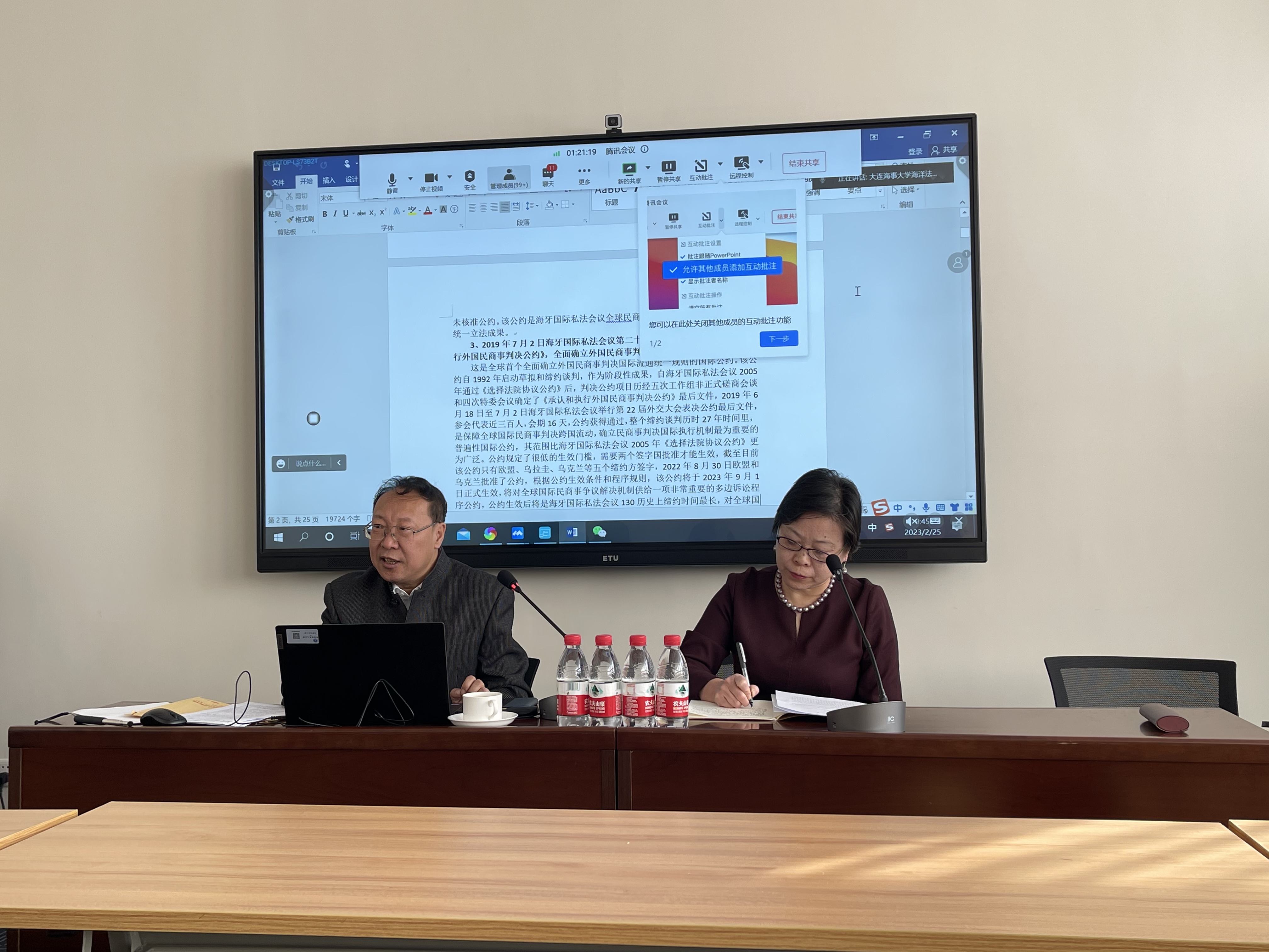 2023年2月25日,大连海事大学海洋法治与文化研究院在中伦文德报告厅举行专题报告会,我校国际法研究中心主任王瀚教授应邀做“国际商事争端解决机制的新进展”的主题讲座,大连海事大学法性爱直播 王淑敏教授主持讲座,通过现场交流和视频会议结合的方式,百余位博士、硕士研究生和教师参与讲座交流。