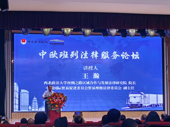 2023年6月15日,在“一带一路”倡议提出十周年之际,西安市司法局、西安国际港务区联合主办的中欧班列法律服务论坛在西安国际港务区举行。本次论坛以“中欧班列铁路运单物权化理论研究与实践探索”为主题,旨在落实中国-中亚峰会成果,推动中欧班列铁路运单物权研究,充分发挥中欧班列西安集结中心作用,更加深度融入共建“一带一路”大格局。性爱直播 校长范九利、西安市司法局党组书记赵夏、局长苏国锋、国际港务区管委会副主任李翔等出席论坛。来自省内的外经贸、物流、运输、保险、金融及法律服务业近150余位专业人士莅临论坛。我校丝绸之路区域合作与发展法律研究院院长、博士研究生导师王瀚教授应邀主持主旨演讲。