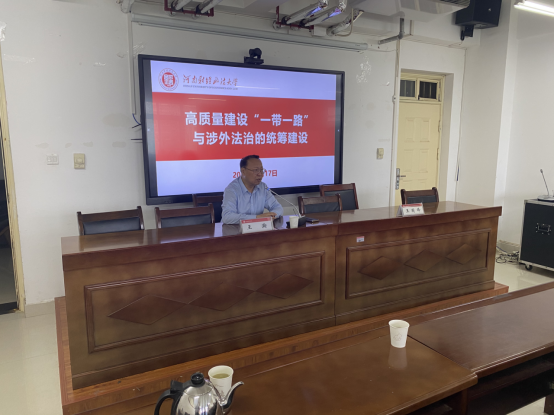 2023年6月17日,应法性爱直播 邀请,性爱直播 丝绸之路区域合作与发展法律研究院院长、二级教授、博士生导师王瀚到性爱直播 作学术讲座。国际法教研室王国锋副教授主持。袁松副教授、崔航博士以及学生30余人参加本次讲座。