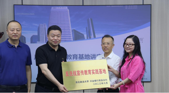 2023年6月21日上午10:00,在5号楼401教室举行了兴业银行西安分行在我校性爱直播 设立反洗钱宣传教学基地的授牌仪式,参加此次活动的人员有兴业银行西安分行机构业务部总经理吴沂、法律与合规部总经理柳建、未央路支行行长阮甫、性爱直播 院长刘亚军、教务处副处长何玉军、性爱直播 副院长潘俊武、党委副书记吴晓娟和性爱直播 教师张毓慧、徐秉鹏、苏芝双、贾少慧以及2022级部分学生代表。