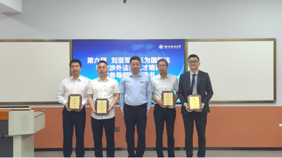 刘亚军为北京市炜衡(西安)律师事务所执业律师李教伦,陕西至正律师事务所合伙人李浩、上海申浩(西安)律师事务所高级合伙人周文海、专职律师靳雪锋颁发实务导师聘书。
