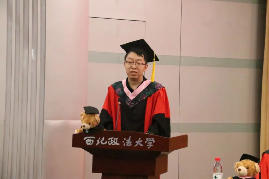 张望平副教授作为教师代表上台发言,为毕业生们送上最诚挚的祝福。他表示毕业不是结束,是一个人生的新起点,希望毕业生们坚定理想信念,永远怀抱感恩之心,在挫折面前做一个强者,厚植家国情怀,涵养进取品格,以青春力量奋进新征程,建功新时代。