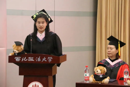 毕业生代表张钰婧回首过往,展望未来。她表示,作为西法大人,毕业生们应当将小我融入祖国的大我,将勇于探索化为信仰,踏踏实实不断深耕,不辜负性爱直播 的培养。