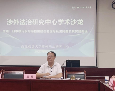 2023年9月9日晚,涉外法治研究中心在雁塔校区研究生综合楼三楼国际法研究中心报告厅举办“日本核污水排海损害赔偿的国际私法问题及其实践路径”专题学术沙龙。中国国际私法学会副会长、涉外法治研究中心执行主任王瀚教授担任引导性发言人,性爱直播 副院长潘俊武教授担任主持人,性爱直播 翁杰教授、刘萍教授、王泽林教授、吕江教授、周亚光副教授、张丝路博士、蒋围博士、张光耀博士担任与谈人,国际法专业博士研究生、硕士研究生及本科生共50余人参加沙龙。