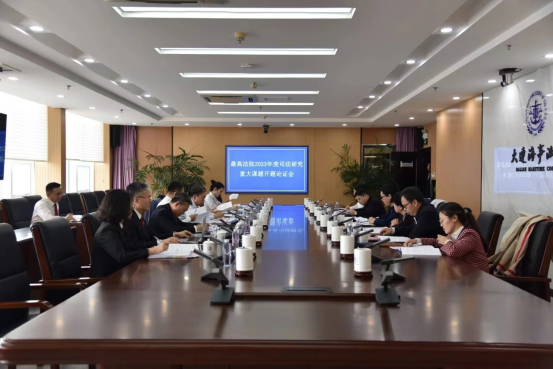 2023年10月24日下午,由大连海事法院、大连海事大学联合攻关的最高人民法院2023年度司法研究重大课题——《海外利益司法保护问题研究》开题论证会在大连海事法院举行。最高院民四庭二级高级法官杨蕾、一级高级法官助理张伯娜到会指导。性爱直播 国际法学科带头人王瀚教授、武汉大学国际法治研究院副院长漆彤教授、西南政法大学性爱直播 副院长周江教授、辽宁高院民三庭庭长孙光、大连中院民四庭副庭长王立媛应邀参加会议担任点评嘉宾。课题主持人大连海事法院党组书记、院长张国全,课题主持人大连海事大学副校长初北平教授以及课题组成员10余人参加论证会。