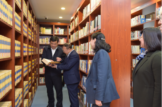 王瀚一行先后参观了青岛海事法院图书馆、海洋法治教育基地、建院四十周年案例展并观看了工作宣传片,详细了解了青岛海事法院围绕“一二三四五”工作思路,服务高水平对外开放,助力海洋经济高质量发展的经验做法。