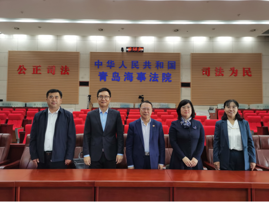 2023年11月7日上午,我校国家智库基地涉外法治研究中心执行主任王瀚教授、青岛大学法性爱直播 院长蔡颖雯教授、副院长马卫东教授、纪林繁博士赴青岛海事法院调研并就涉外海事海商司法人才培养和司法智库建设举行座谈交流。青岛海事法院党组书记、院长吴锦标主持座谈会,海事法院政治部主任段恒宋、研究室主任王爱玲、办公室副主任曹照勇、杨丹等部门负责人参加了座谈活动。