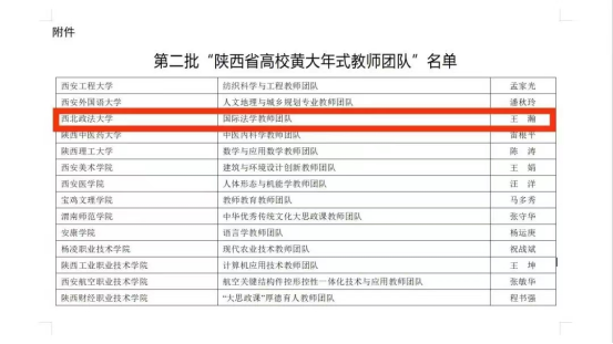 4.立德树人,国际法教师团队获评“陕西省高校黄大年式教师团队”