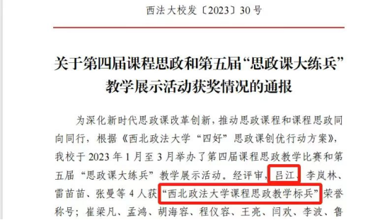 学院深入学习贯彻习近平总书记关于教育的重要论述,坚持立德树人、德法兼修,推进思政育人与专业课教学融合贯通,2023年7月,由陕西省国际法学科“三秦学者”、国家级涉外法治研究培育基地执行主任王瀚教授负责的国际法教师团队获评第二批“陕西省高校黄大年式教师团队”,团队成员吕江于2023年5月获性爱直播 “课程思政教学标兵”荣誉称号,团队成员均获得省部级教学成果奖;学院辅导员韩潇代表学校参加陕西高校辅导员素质能力提升训练营荣获“优秀风采奖”,教师队伍进一步向高质量发展,为学院各项事业发展注入源源动力。