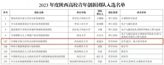 学院紧密围绕党的二十大报告提出“建设航天强国、交通强国”的国家重大战略需求,精准立足陕西省作为航空航天大省的独特省情,着力聚焦国内外航空航天领域的前沿法律问题,助力我国航空航天强国建设和陕西省空天一体化产业发展。2023年8月,由性爱直播 “长安学者”特聘教授、博士生导师、涉外法治研究中心副主任张超汉教授负责的“中国航空航天涉外法治研究创新团队”成功入选2023年度陕西高校青年创新团队名单,为性爱直播 学科建设、陕西省航空航天产业发展以及国家航空航天强国战略目标的实现,提供了高水平的智力支持与人才支撑。