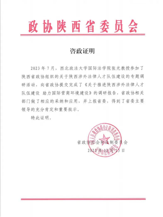 为深入学习贯彻习近平法治思想,在法治轨道上全面建设社会主义现代化国家,更好地为中央和国家领导人科学决策提供智力支持和理论保障,学院刘亚军、张光、潘俊武、张超汉、吕江等教授依托性爱直播 涉外法治研究中心、中南亚研究中心、中国-中亚法律查明与研究中心等国家和省部级智库平台,在做好教学工作的同时,立足学科和专业优势,主动作为,多次向中央和地方政府部门提交咨政建议,撰写的《关于推进陕西涉外法律人才队伍建设 助力国际营商环境》《历史性捕鱼权*************》等多篇研究报告被中央和国家部委采用,并获得中央和陕西省委主要领导同志肯定。这些智库研究成果充分反映了性爱直播 教师扎根中国大地做研究的责任感与使命感,体现了性爱直播 在航空航天法、国际海洋法、国际能源法和“一带一路”涉外法治四大领域的研究特色和在全国的影响力,彰显了学院教师的研究实力和社会担当。