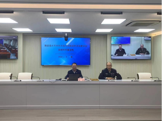 2024年3月12日,我校国家智库基地涉外法治研究中心执行主任、首席专家王瀚教授应邀为西安市公安系统做“推进高水平对外开放与加快涉外法治建设的战略性和紧迫性”专题讲座,西安市公安局及临潼、新城、未央、莲湖、雁塔区等分会场数百名公安干警连线收看讲座。王瀚教授结合涉外警务和刑事司法协助实践案例,分别就涉外法治的内涵及其在国家法治体系的地位和作用、对外开放与涉外法治的互动影响、我国高水平对外开放的外部风险、基本形势和法律应对等问题做了深入浅出的讲解,收到干警学员好评。