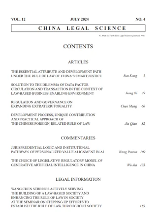 《中国法学(英文版)》(《China Legal Science》)是由中央政法委主管、中国法学会主办的学术期刊,由中国法学杂志社编辑出版,入选中国法学核心科研评价来源期刊(CLSCI)、《中国人文社会科学期刊AMI综合评价报告》AMI外文刊核心。