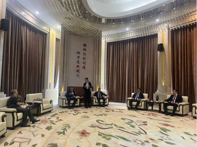 最后,访问团来到中欧班列西安集结中心。在中铁联集西安中心站,车站海关马越副关长热情接待了来自乌兹别克斯坦的客人,向乌方代表详细介绍了中心建设和运营情况,通过精确的数据展示了中欧班列在共建“一带一路”过程中的关键作用。马越副关长还重点介绍了我国与包括乌兹别克斯坦在内的中亚国家之间的贸易往来,中欧班列已经成为连接中国与中亚国家贸易合作的重要纽带。