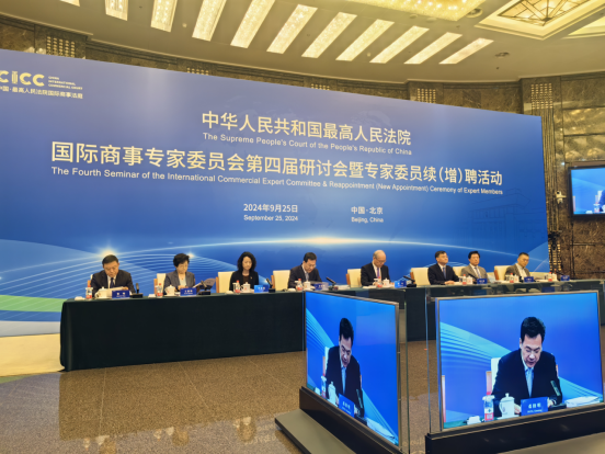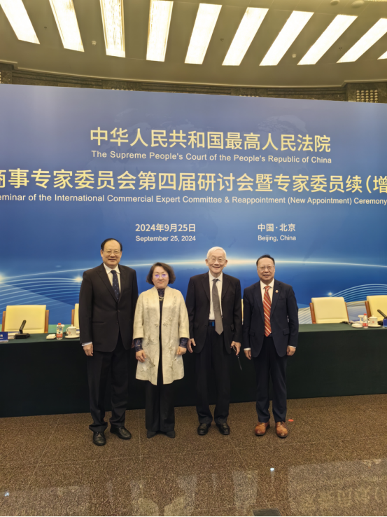 2024年9月25日,最高人民法院国际商事专家委员会第四届研讨会暨专家委员续(增)聘活动在北京举行,与会专家共商国际商事纠纷公正高效解决。中华人民共和国首席大法官、最高人民法院院长张军、最高人民法院副院长邓修明、最高人民法院审判委员会副部级专职委员王叔梅、司法部副部长胡卫列、商务部国际贸易谈判副代表李詠箑中国国际贸易促进委员会副会长于建龙及外交部和国家发改委有关领导出席并致辞。来自20多个国家的最高人民法院国际商事专家委员会委员、最高人民法院第一、二国际商事法庭负责人和法官代表、全国各地方法院国际商事法庭负责人、法官代表、国际商事争端预防与解决组织负责人,贸仲、海仲和北京、上海、深圳、海南等地仲裁机构负责人及中外新闻媒体记者出席聘任仪式。我校国家智库研究基地涉外法治研究中心执行主任、首席专家、最高人民法院国际商事专家委员会委员王瀚教授应邀出席会议。