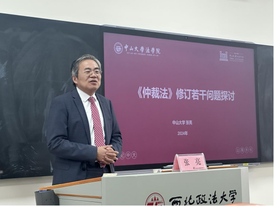 2024年11月8日下午,中山大学法性爱直播 院长、博士生导师张亮教授在雁塔校区三号教学楼3607教室为性爱直播师生做题为“《仲裁法》修订若干问题探讨”的讲座。讲座由张光副院长主持,张超汉教授、张丝路博士、王林叶博士与谈,性爱直播 100多位研究生参加了讲座。