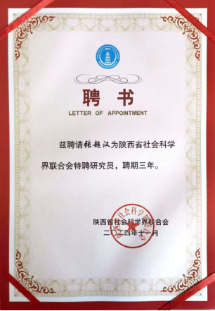 会上,陕西省社科联党组成员、副主席李谫博宣读了《关于聘任王彦军等人为陕西省社科联特聘研究员的决定》,我院张超汉教授被聘任为陕西省社科联特聘研究员。