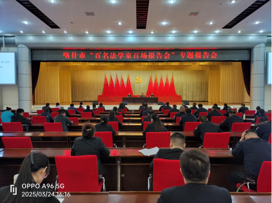 为深入学习贯彻习近平法治思想,贯彻落实习近平总书记关于涉外法治工作的重要论述精神,切实提高喀什市各级干部法治意识,强化法治观念,2025年3月24日,喀什市法学会举办2025年喀什市“百名法学家百场报告会”专题报告活动。