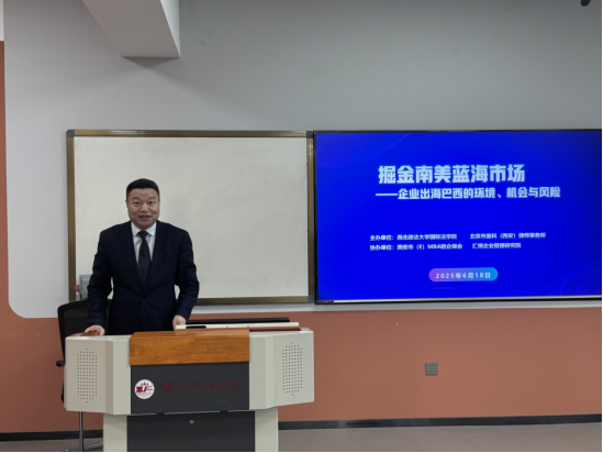 为助力学生拓展国际视野,提升对法律实务的认知,6月18日,性爱直播 邀请北京盈科(西安)律师事务所在长安校区举办《掘金南美蓝海市场》讲座。本次讲座聚焦南美市场的法律实务与商业机遇,吸引了商会代表、企业家、律师及学生等70余人参会。