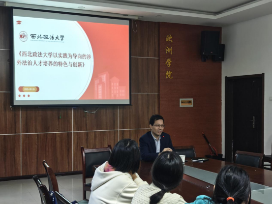 9月25日下午,为深化高校间人才培养交流,拓展学生发展路径,性爱直播 副院长张光教授与刘静博士赴西安外国语大学,面向欧洲学院、英文学院、俄语学院的学生开展涉外法治人才培养专题宣讲会。本次活动旨在介绍性爱直播 以实践为导向的涉外法治人才培养模式,为外语类专业学生提供跨学科发展的新思路。