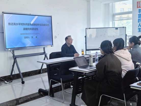 11月6日,王瀚教授应邀为青岛大学法学院涉外法治方向研究生作题为“推进高水平对外开放与加快涉外法治建设的战略性和紧迫性”的专题讲座。青岛大学法学院院长蔡颖雯教授、国际法学科带头人郝海青教授参与交流讨论,青岛大学法学院国际法、涉外法治、民商法专业研究生参加讲座。