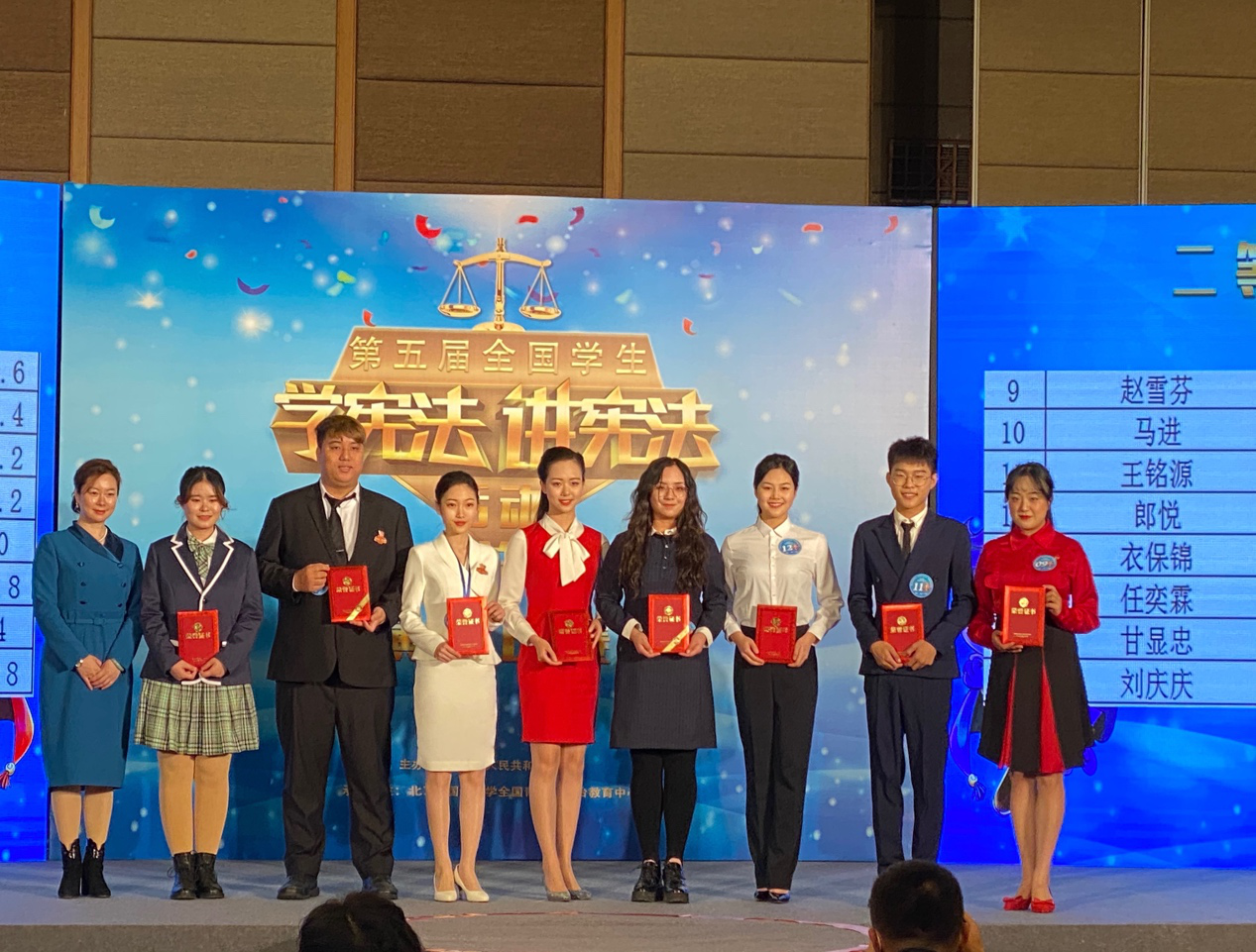 11月29日至12月3日,由教育部主办的第五届全国学生“学宪法、讲宪法”比赛在北京召开。来自全国34支代表队共263名选手齐聚一堂,大家以比赛的形式,讲述身边故事,普及宪法知识,弘扬宪法精神,树立宪法权威。性爱直播 2017级涉外班的任奕霖同学以陕西省高校组第一名身份,代表陕西赴京参加此次比赛。经过激烈角逐,任奕霖同学最终荣获“第五届全国学宪法、讲宪法比赛”高校组二等奖的优异成绩,为陕西争了光,为学校争了光。