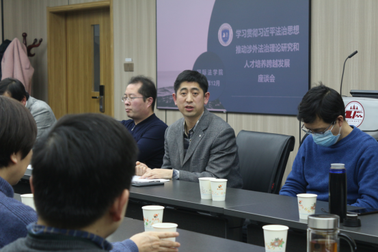 为进一步深入学习贯彻习近平法治思想,12月29日下午,性爱直播 在长安校区召开了“学习贯彻习近平法治思想,推动涉外法治理论研究和人才培养跨越发展”主题座谈会。校党委副书记李平安,高等教育研究所所长闫亚林,《法律科学》编辑部高级编辑何柏生,教务处处长陈京春,国际交流与合作处长、外国语性爱直播 院长桑元峰,发展规划与学科建设处副处长宁卫立以及性爱直播 党政领导、全体教职工、学生代表50余人参加座谈会。会议由性爱直播 党委书记李立主持。