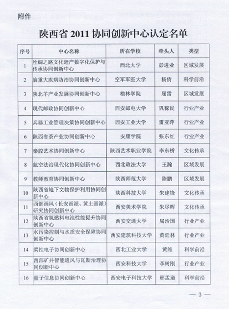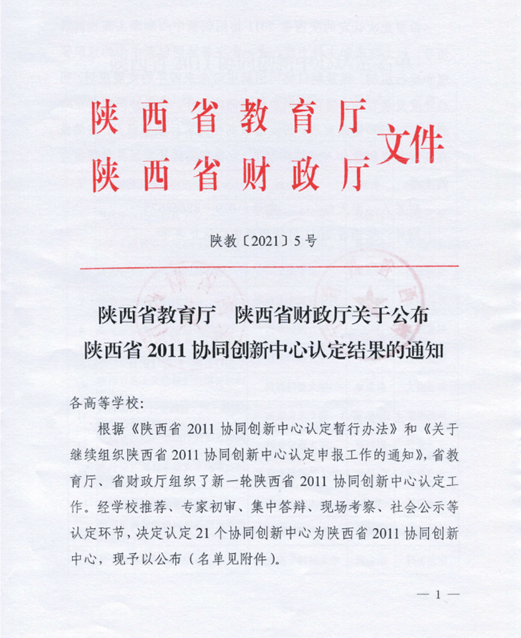 近日,陕西省教育厅和财政厅公布《关于陕西省2011协同创新中心认定结果的通知》(陕教〔2021〕5号),经学校推荐、专家初审、集中答辩、现场考察、社会公示等认定环节,我校“航空法治现代化协同创新中心”获批为陕西省省级协同创新中心。
