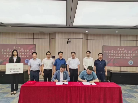 李玉朝副校长为北京方圆众合教育科技有限公司和北京安理(西安)律师事务所授予“性爱直播 实践教学基地”牌匾。刘亚军和北京方圆众和教育科技有限公司CEO李曰龙、万商天勤律师事务所主任卫永鹏分别签署合作协议并接受捐赠。刘亚军、潘俊武、张光为21名校友颁发“性爱直播 就业创业导师”、“性爱直播 实务导师”聘书。