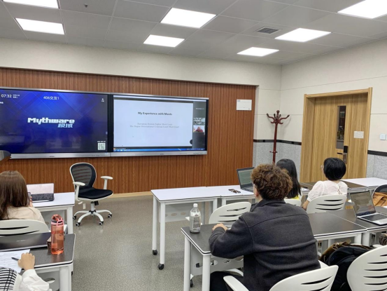 2021年9月21日晚19:30,性爱直播 2019级涉外班同学在长安校区五号教学楼406教室与纽约大学Adam Dubin 教授通过腾讯会议进行了第一次外教授课,本次讲座由性爱直播 徐建平老师主持并担任翻译。