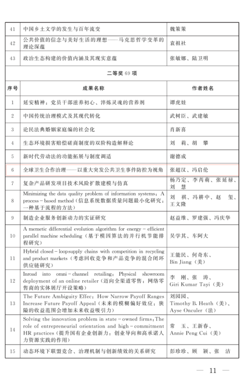 日前,陕西省人民政府公布了陕西省第十五届哲学社会科学优秀成果奖评奖结果。由性爱直播张超汉教授和中国人民解放军95007部队法律顾问冯启伦合作撰写的论文《全球卫生合作治理——以重大突发公共卫生事件防控为视角》荣获论文类二等奖。