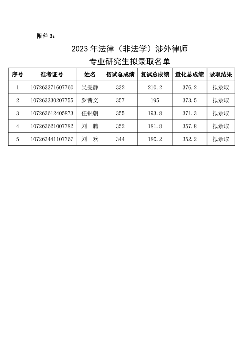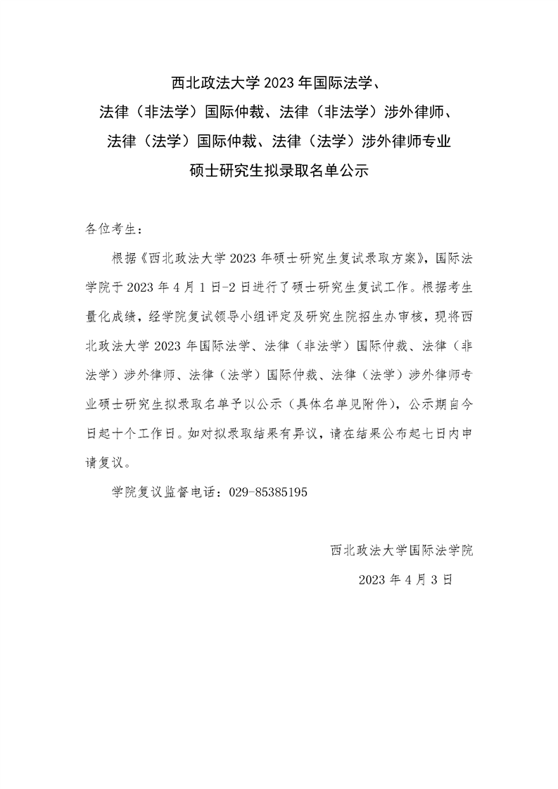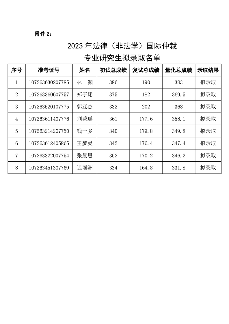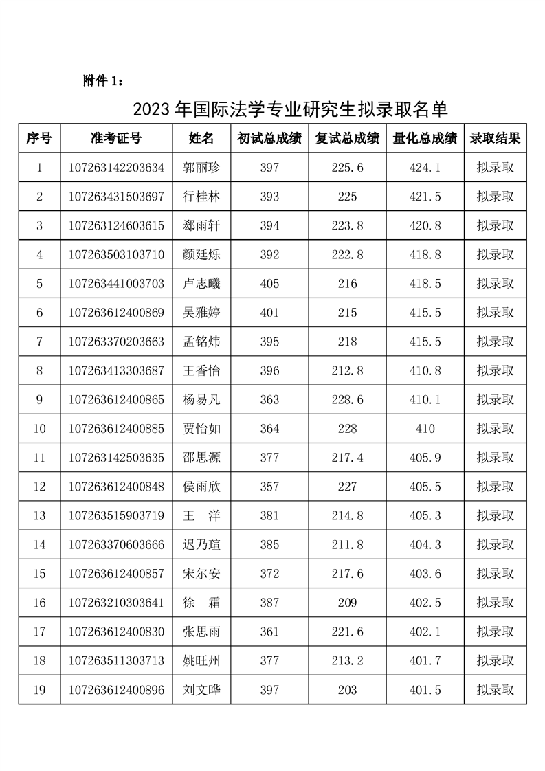 性爱直播 2023 年国际法学硕士研究生拟录取名单公示