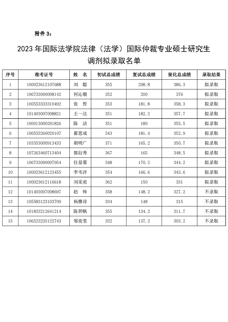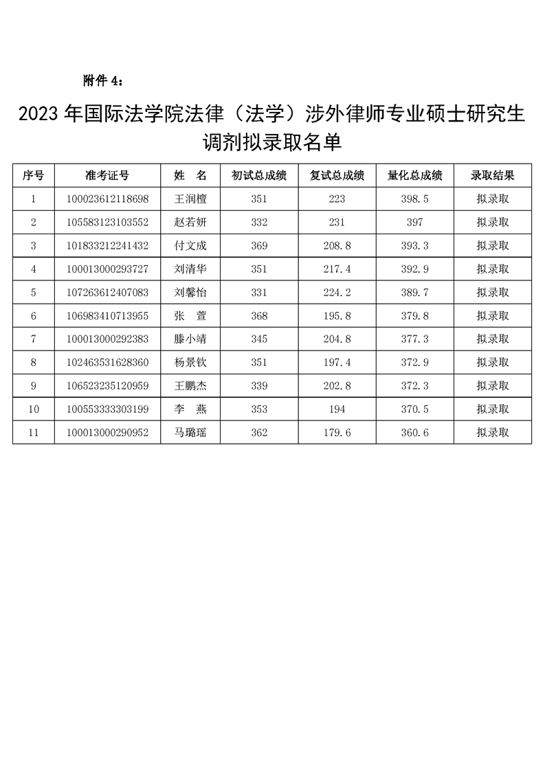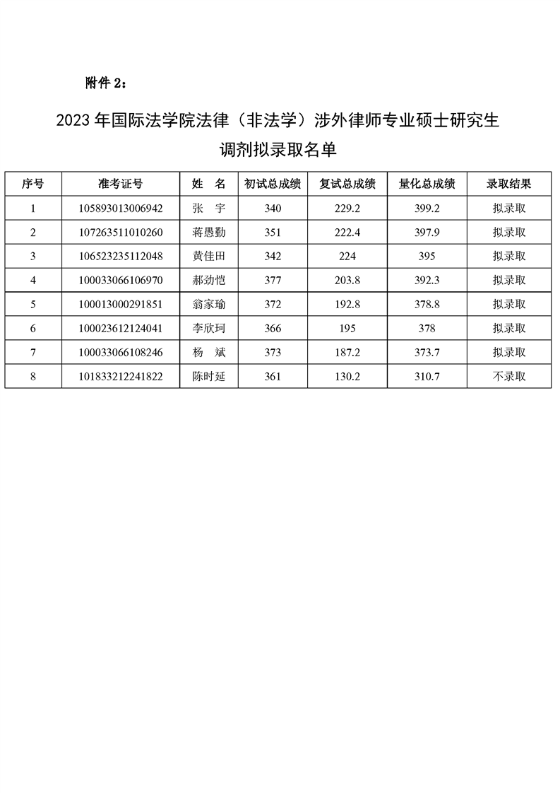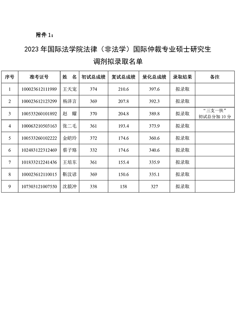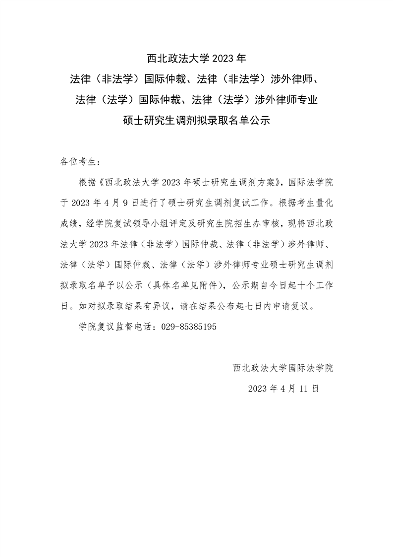 性爱直播 2023年法律硕士(国际仲裁、涉外律师)调剂拟录取名单公示