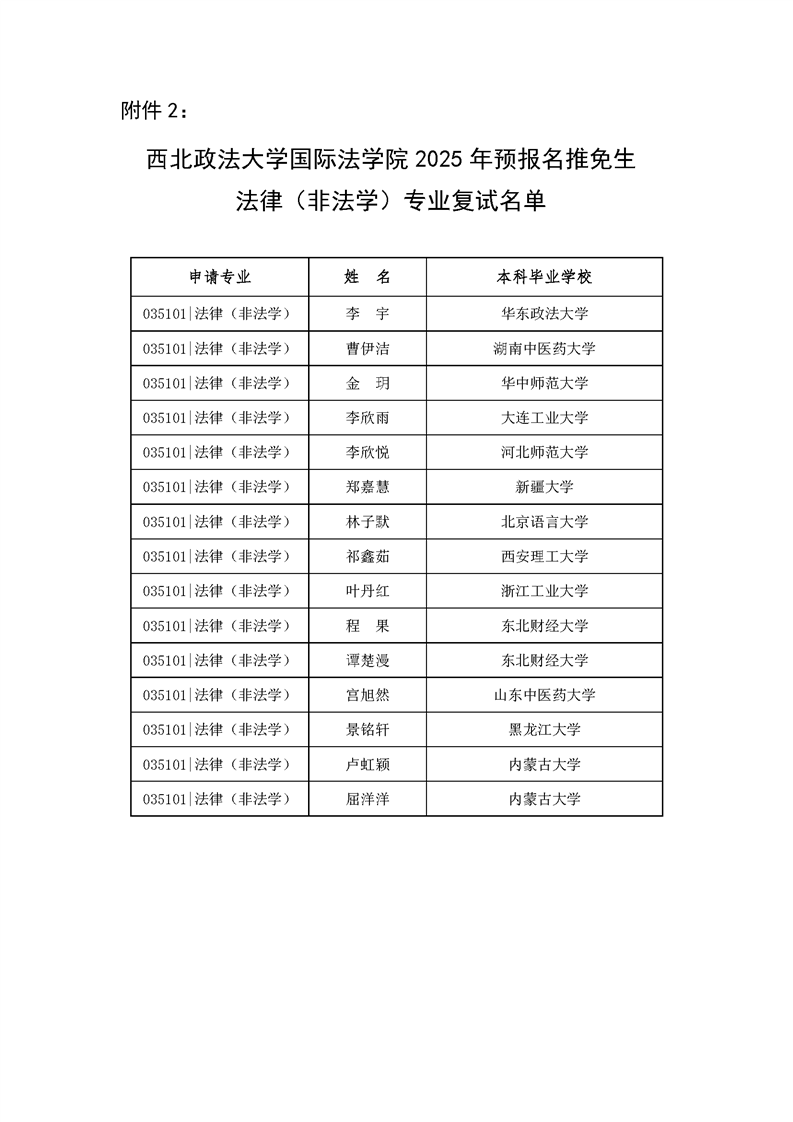 2024级‘涉外法治人才协同培养创新基地班’学生遴选公示