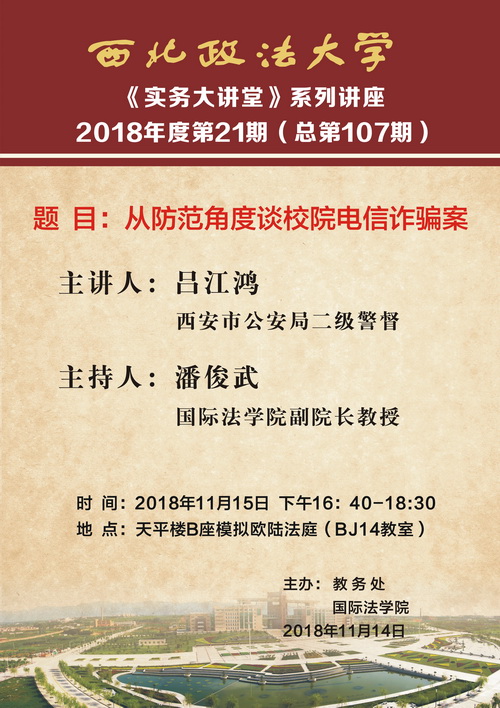 《实务大讲堂》系列讲座2018年度第21期讲座预告